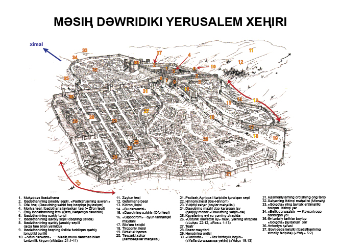23:37 «Əy Yerusalem, Yerusalem!...» — Muⱪǝddǝs Kitabta, adǝmning ismini ikki ⱪetim qaⱪirix — uningƣa bolƣan qongⱪur meⱨir-muⱨǝbbitini wǝ ɵzigǝ tolimu ǝziz ikǝnlikini kɵrsitidu. «Mekiyan qüjilirini ⱪanat astiƣa yiƣⱪandǝk pǝrzǝntliringni ⱪanqǝ ⱪetim ⱪoynumƣa almaⱪqi boldum, lekin silǝr unimidinglar!» — «pǝrzǝntliring» — Yerusalemdikilǝrning ɵzlirini kɵrsitidu.